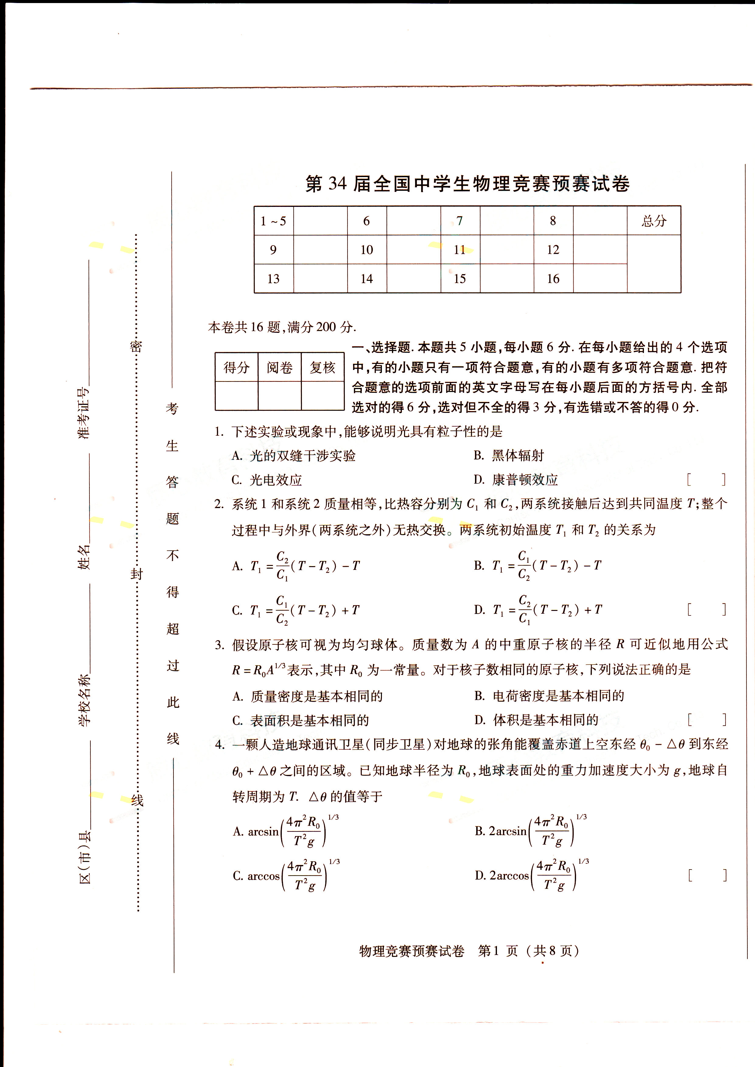 9月2日,第34届物理竞赛初赛举行,目前试题及答案已经出炉!考生可及时查看下载。9月2日,第34届物理竞赛初赛举行,目前试题及答案已经出炉!考生可及时查看下载。(建议在点电脑端下载)