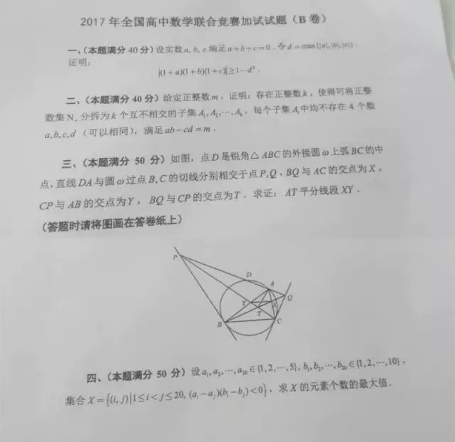 2017年第33届全国高中数学联赛于今天上午8:00至12:10进行。一试11题,二试4题,共计300分。竞赛由全国高中数学竞赛组委会统一命题。北京高考在线团队第一时间收集到本届高中数学联赛试题及赛场花絮,供考生查阅。