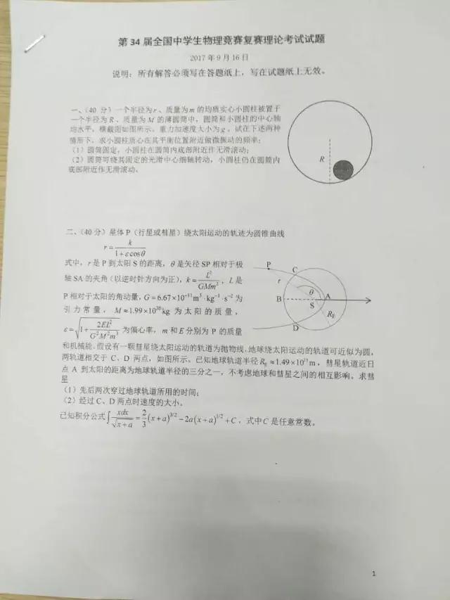 2017第34届物理竞赛(初赛)试题&答案2017-09-02