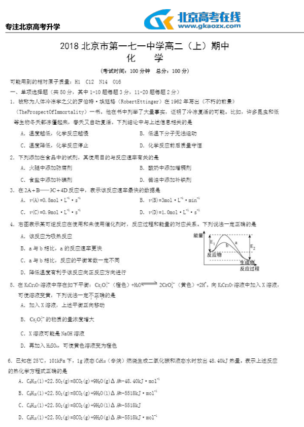 11月初,北京各区陆续进行了2018年高二期中考试!北京高考在线从内部渠道获取了北京一七一中学高二期中化学【高清版】试题答案!赶紧来看看吧!