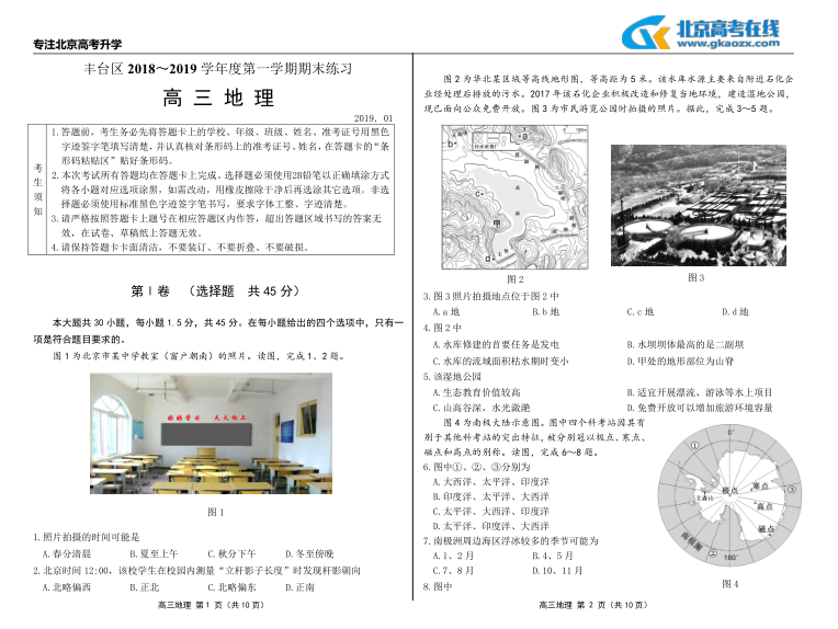 1月15日起,北京高三年级将陆续开始2019年上学期期末考试!北京高考在线网整理2019年北京丰台区高三上学期期末试题及答案,供参考!- 1