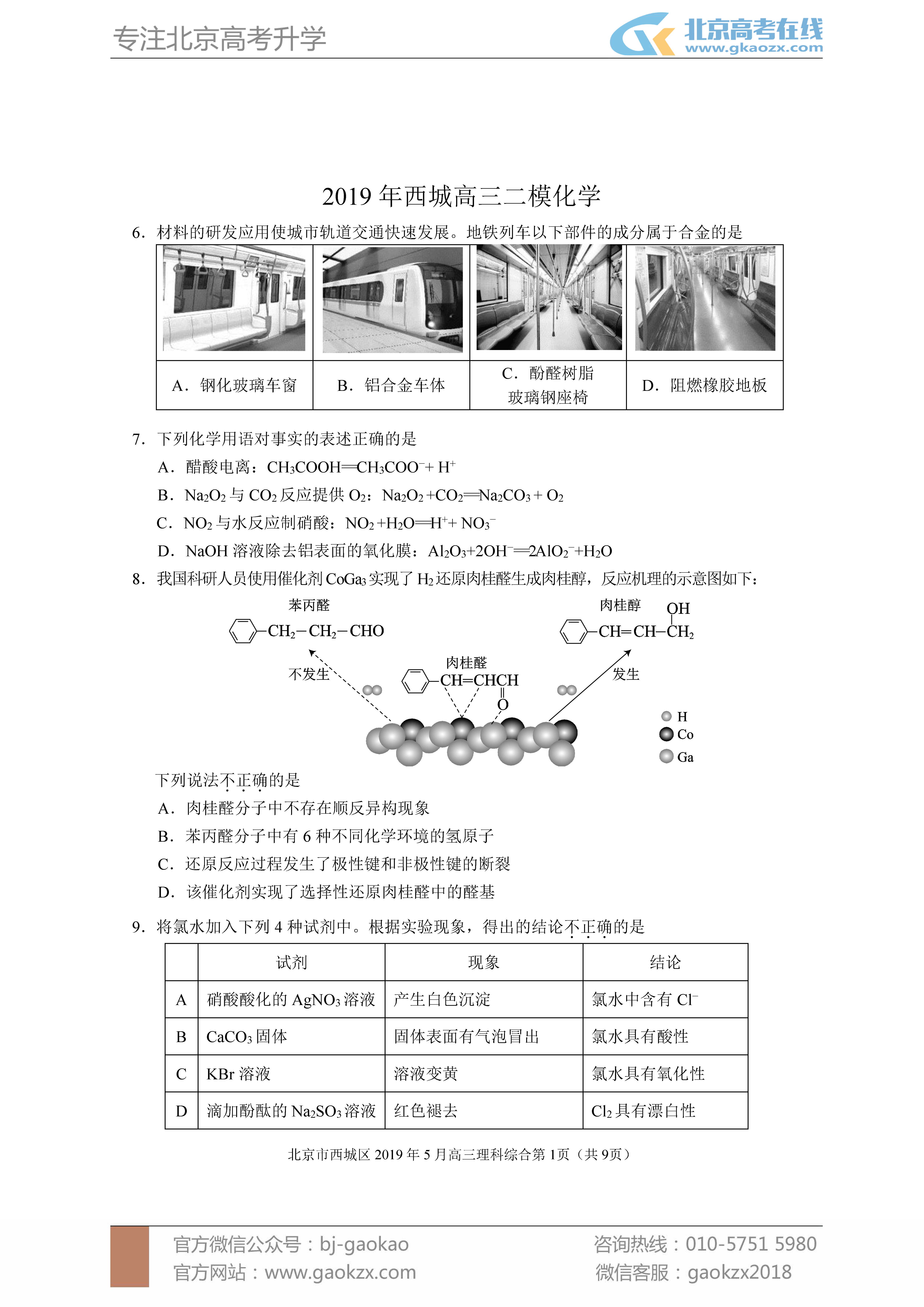 目前,众多家长和考生关注的西城区二模理综考试结束,北京高考在线整理此次考试的化学试卷及答案,供参考。- 1