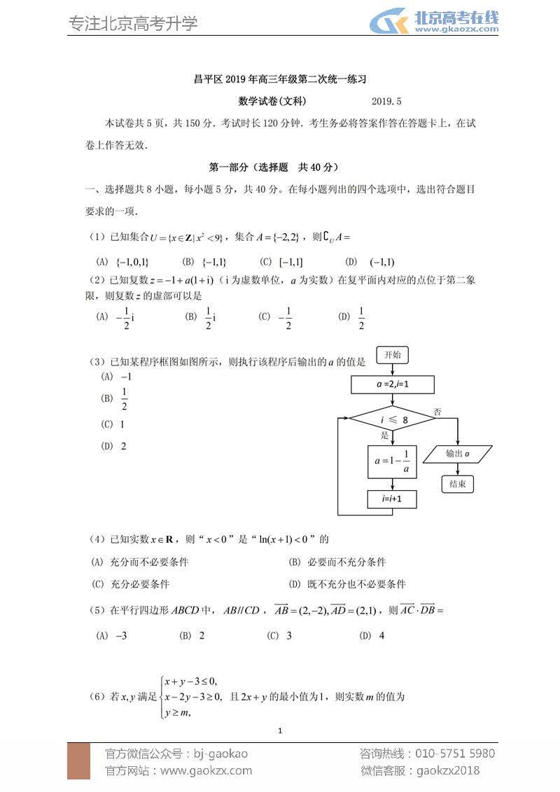近期,昌平结束了2019年高三二模考试,众多家长和考生关注的昌平区二模文科数学试卷及答案出炉,供参考。