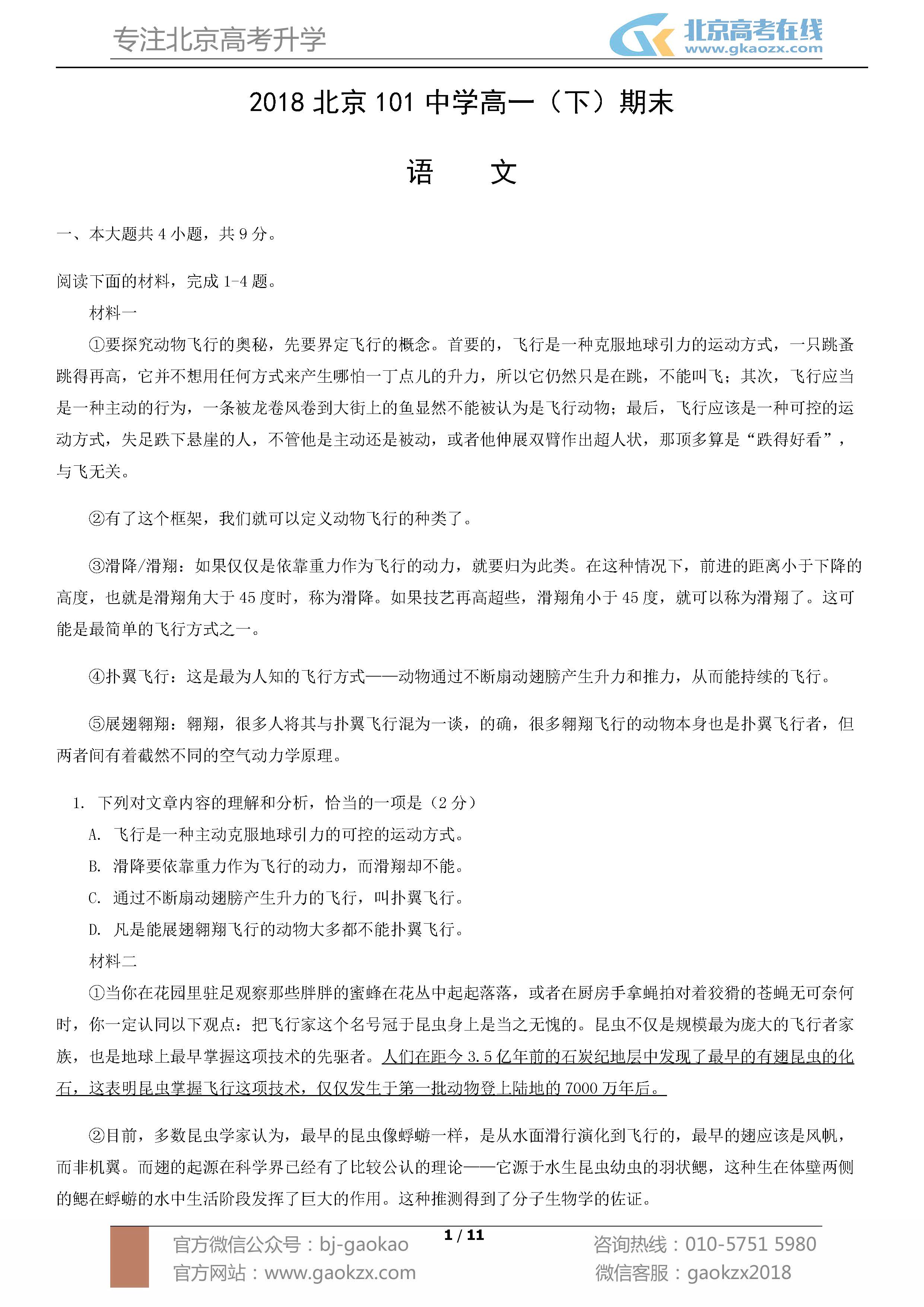北京高考在线团队将陆续整理北京各中学期末考试试卷及答案,供北京考生参考。以下是2018北京101中学高一(下)期末语文试卷及答案。6月下旬开始,北京高考在线团队将陆续整理北京各中学期末考试试卷及答案,供北京考生参考。以下是2018北京101中学高一(下)期末语文试卷及答案。