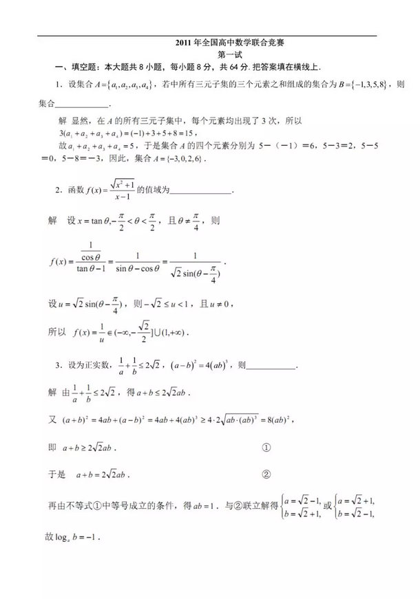 全国高中数学联合竞赛是考生非常重视的比赛,北京高考在线团队整理了2009-2019年全国高中数学联合竞赛试题,以下是2011年全国高中数学联合竞赛一试试题,供北京考生参考。