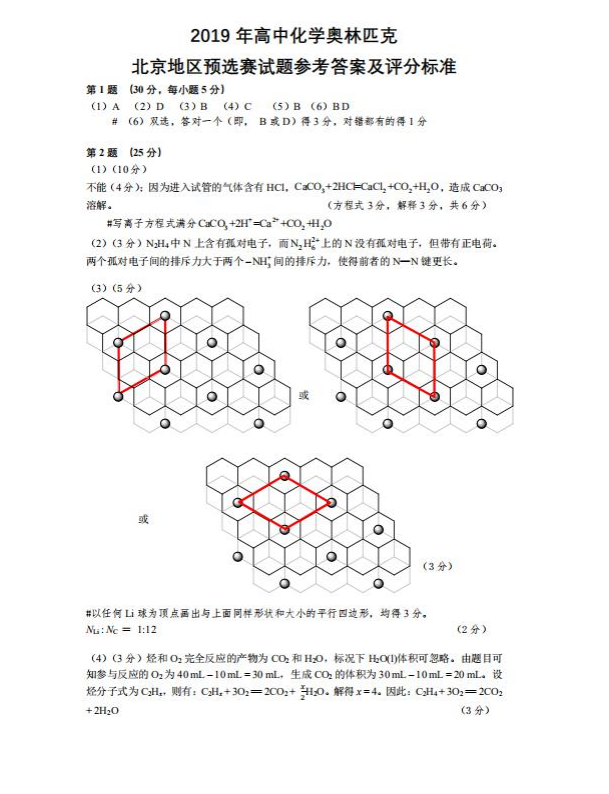 立即下载:2019年第33届高中化学奥林匹克北京地区预赛试题参考答案