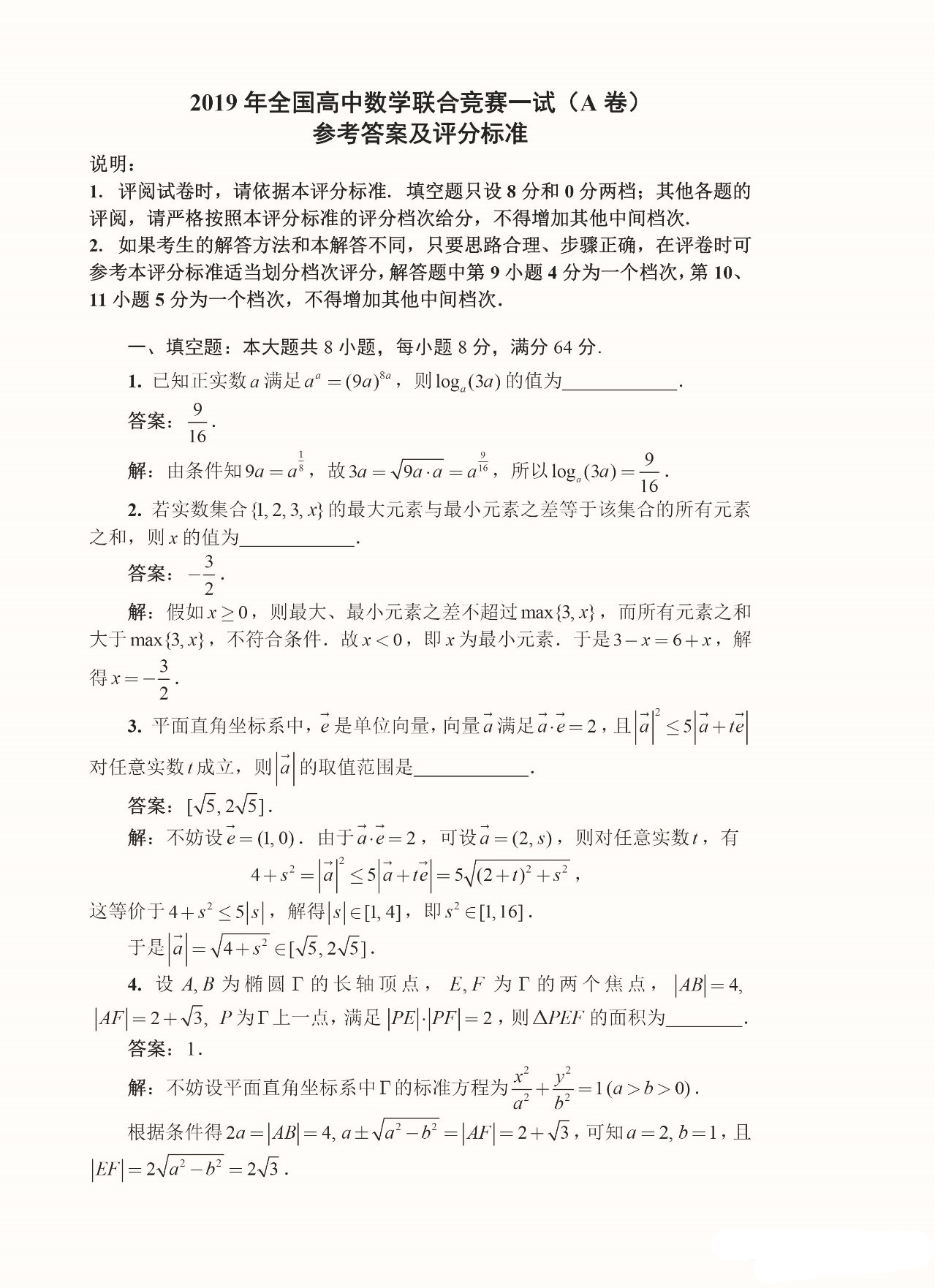 北京高考在线搜集了2019年第35届全国中学生数学联赛一试试题答案,供北京竞赛生参考。9月8日,2019年第35届全国中学生数学联赛开赛,目前一试已经完成,北京高考在线搜集了2019年第35届全国中学生数学联赛一试试题答案,供北京竞赛生参考。