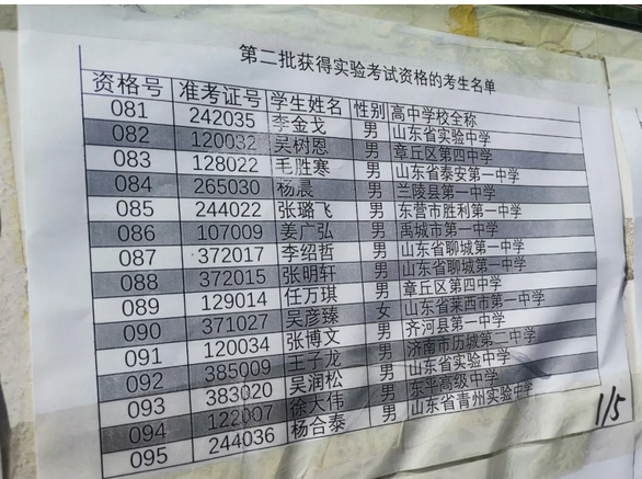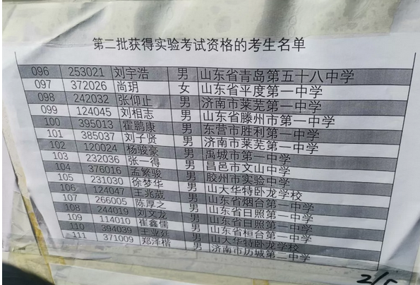 根据竞赛规则和理论考试成绩,山东省现公布第一批和第二批获得实验考试资格的考生名单。