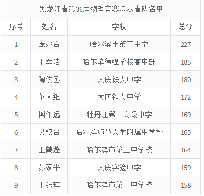 黑龙江省2019年第36届物理竞赛省一获奖名单 共54人2019-09-23