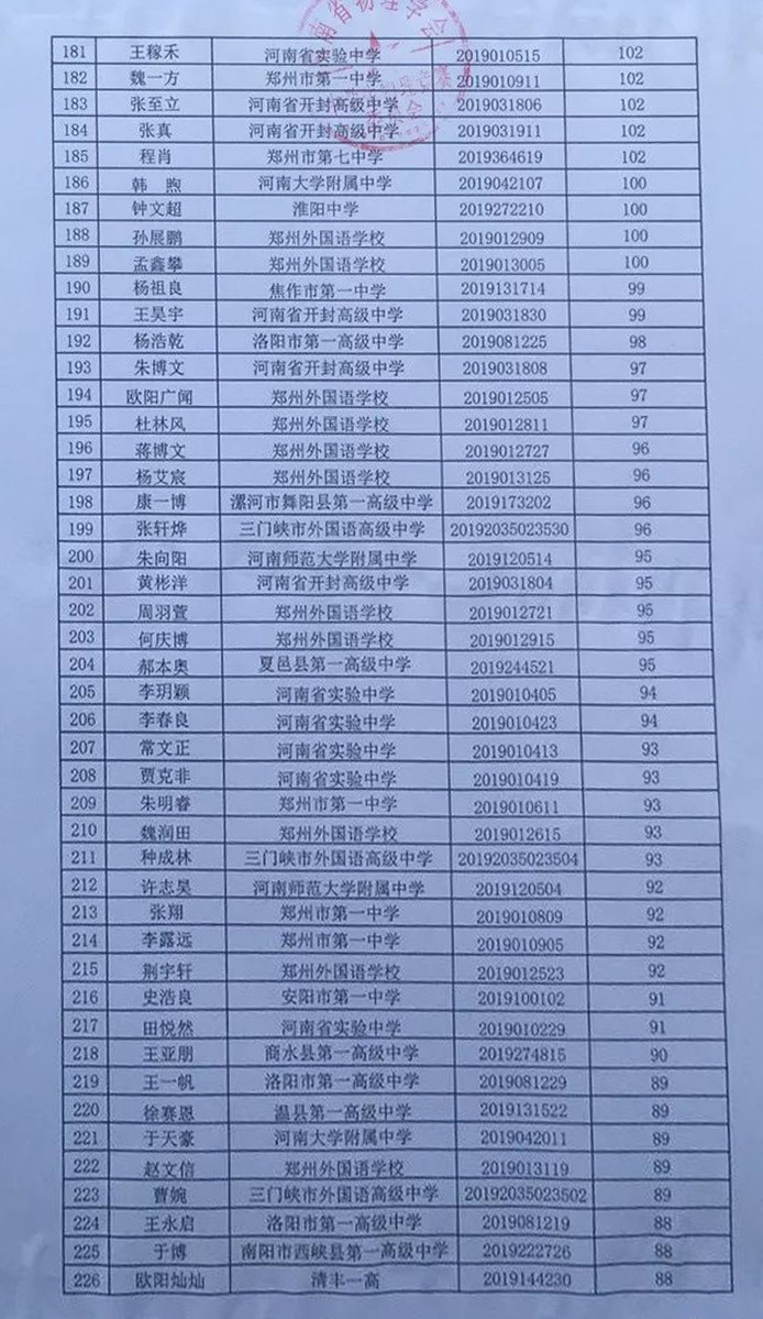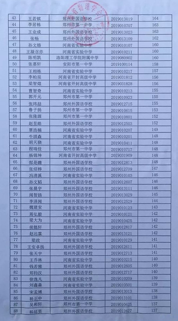 河南省物理复赛理论成绩前300名成绩公布,其中前200名具有查分资格。今年共1400多人参加复赛。9月25日,2019年河南省第36届物理复赛前300名理论成绩公示 ,一起来看看吧!