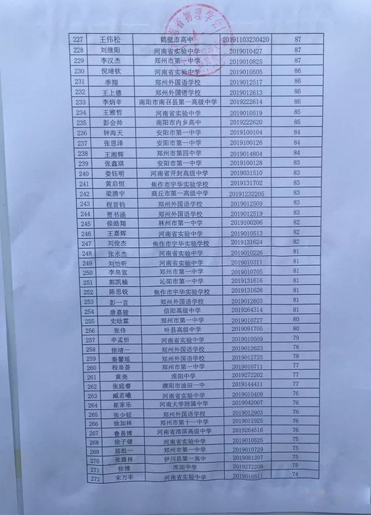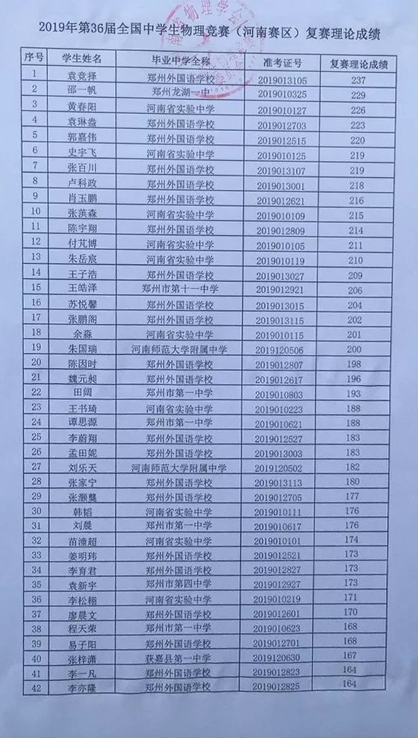 9月25日,2019年河南省第36届物理复赛前300名理论成绩公示 ,一起来看看吧!