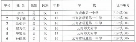 云南2019年第36届全国中学生物理竞赛省队共6人,省一37人,省二141人,省三217人。9月27日,云南发布了2019物理竞赛获奖名单,其中省一前6名直接进入省队,恭喜这些考生们。