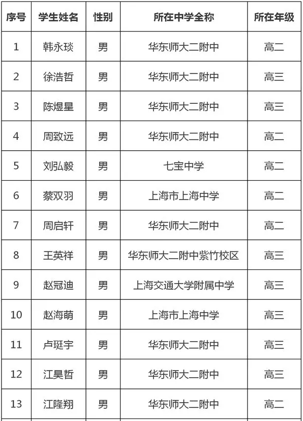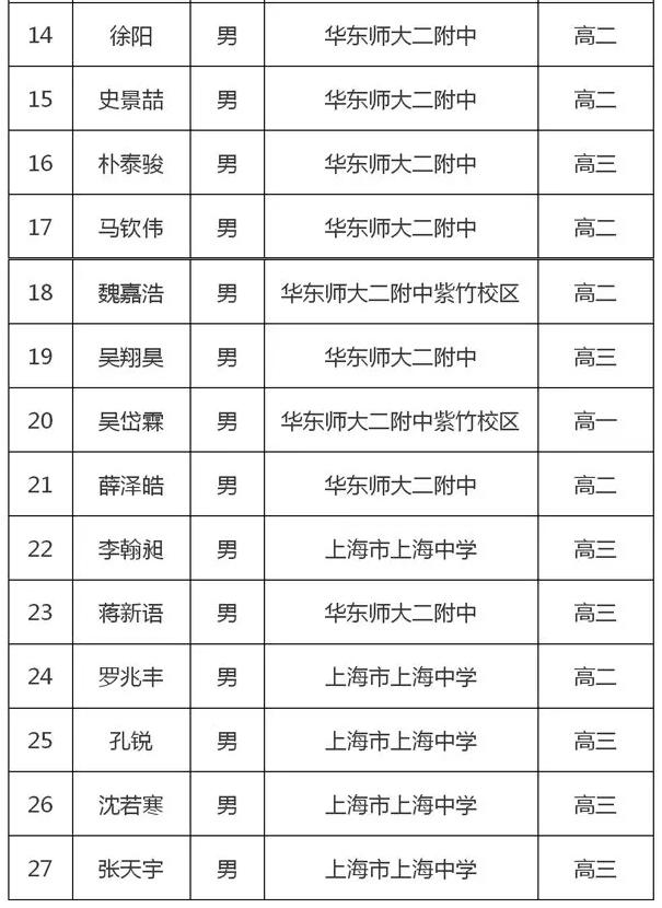 近日,上海物理学会公布了2019年第36届全国中学生物理竞赛上海赛区省队获奖名单,共27名考生进入物理竞赛决赛。北京高考在线团队整理了省队获奖名单,供参考。
