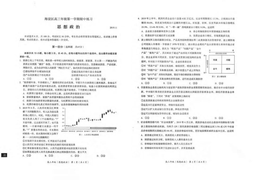 2019年海淀区高三上学期期中政治试题答案出炉!此次测试为全区统考,政治科目安排11月5日下午,目前考试已经结束,试题答案均已发布,可下载打印!11月5-7日,海淀区进行了2019年高三年级上学期期中测试,这也是高三年级第一次进行大型的测试。此次测试,高三年级为全区统考。目前,海淀高三上学期期中考试政治试题答案已经出炉,北京高考在线网站做了整理,可以进行答案查看并下载打印了!
