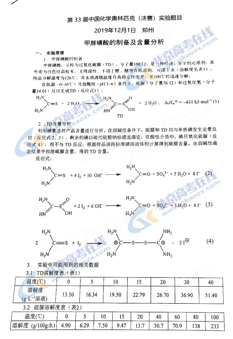 2019年第33届化学奥林匹克决赛理论试题出炉2019-11-30