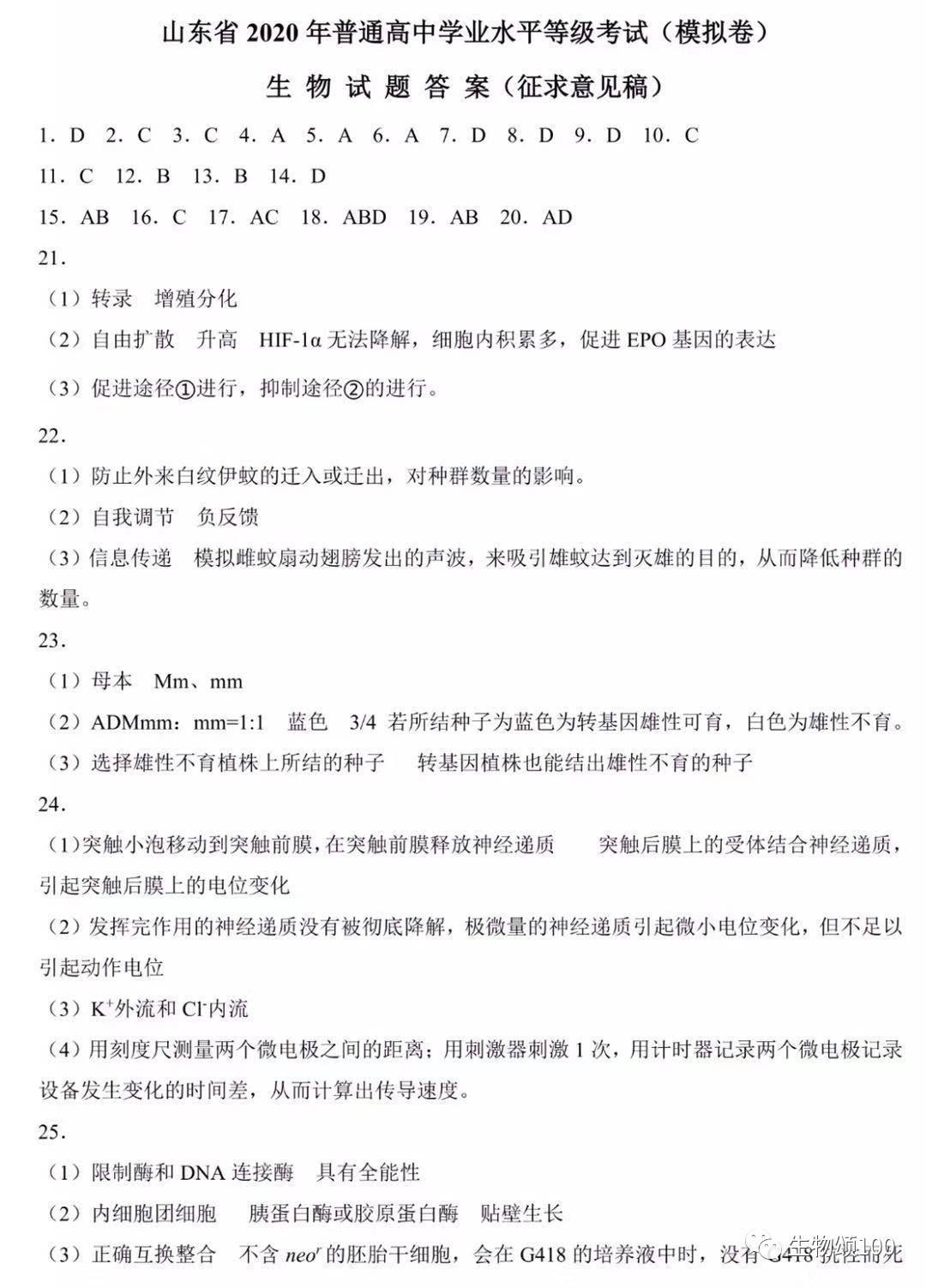北京高考在线网站搜集整理了新高考模拟试题答案,此次答案非官方版本,仅供参考。2020新高考首次模考的考试已经结束,试题由教育部命题中心命制,北京高考在线网站搜集整理了新高考模拟试题答案,一起来看生物试题答案。