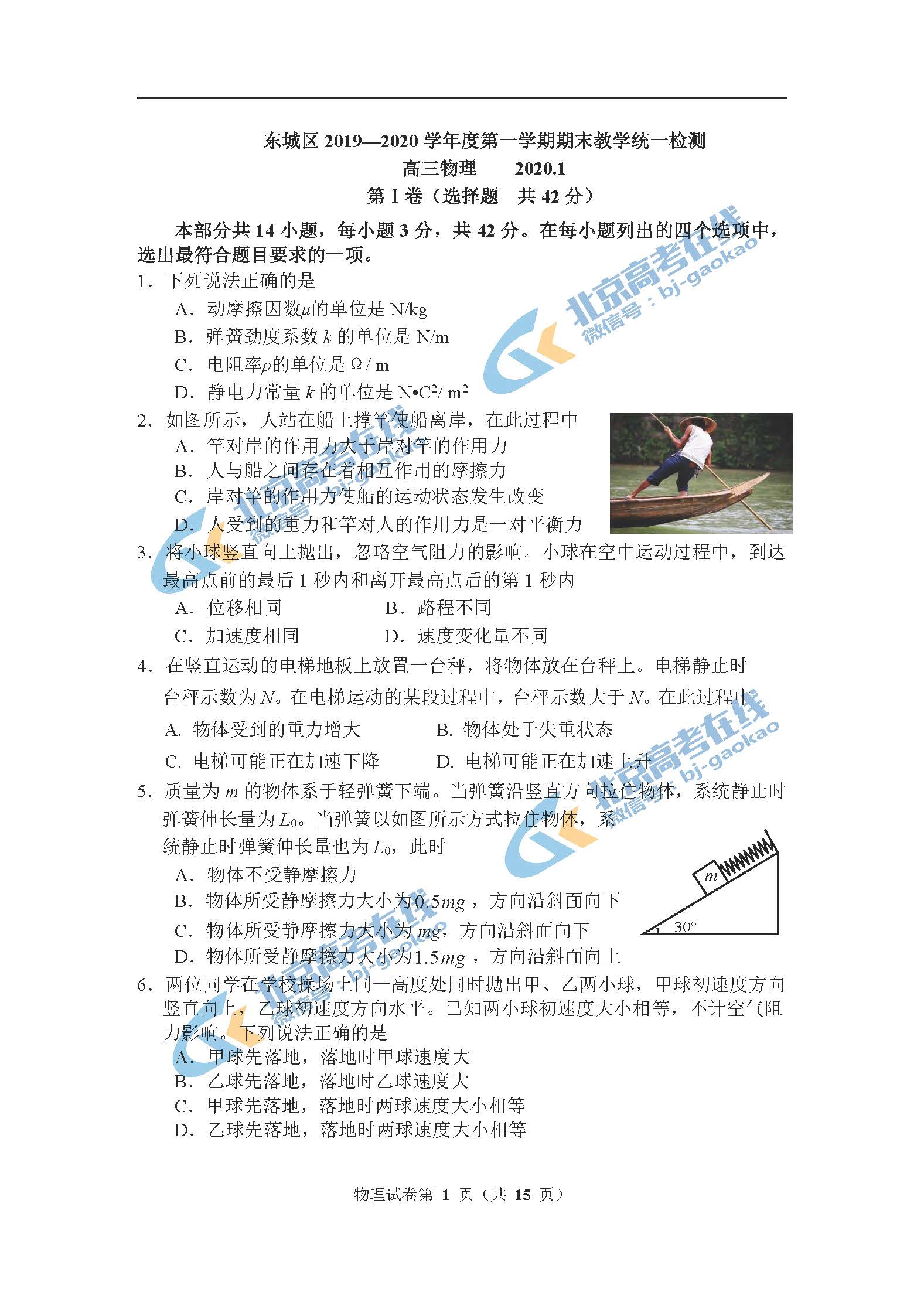 东城区2020年高三上学期期末物理科目考试在1月9日上午10点-11点半进行,目前试题答案已经出炉!北京高考在线团队整理东城区2020年高三期末考试物理试题及答案,供各位考生下载练习!