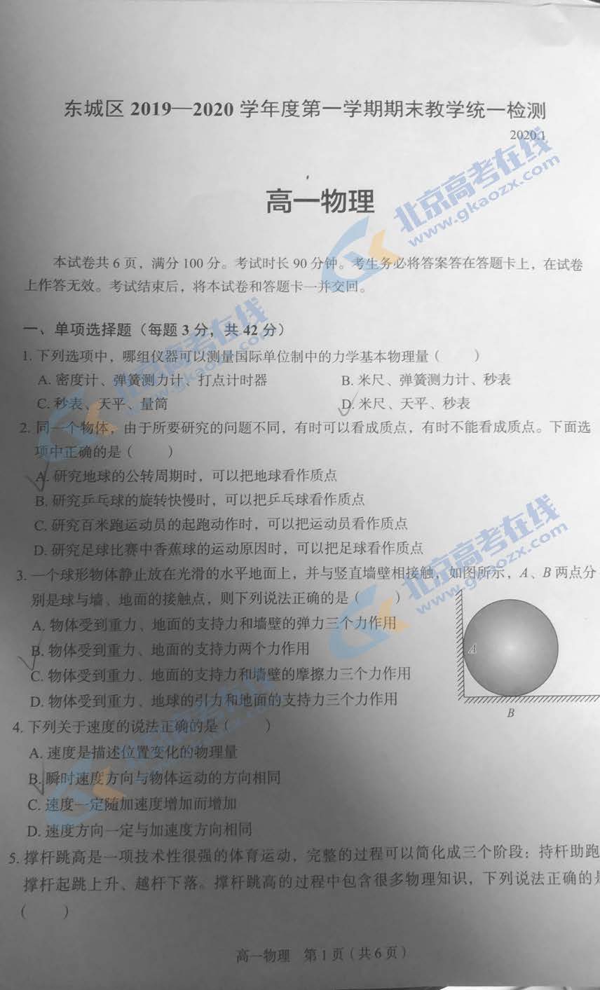 2020北京东城高一(上)期末物理试题发布了,你今天考试情况如何呢?快来看一下物理试卷吧- 1