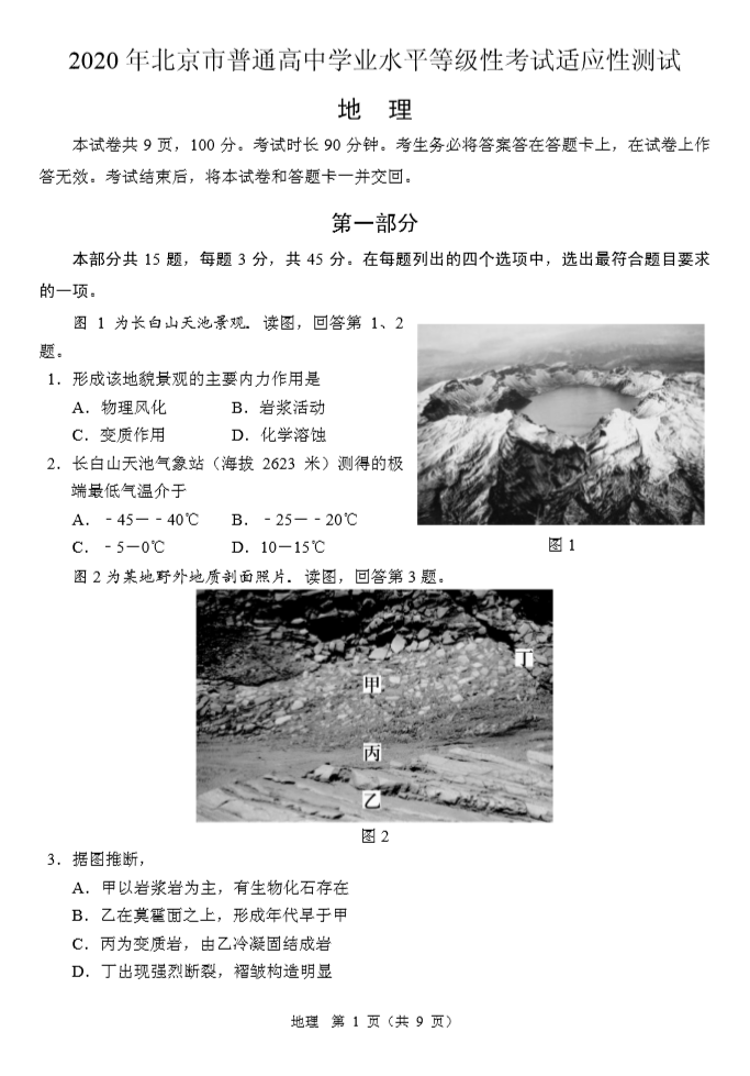 根据北京市教育考试院安排,北京于2020年3月3日-6日进行北京适应性测试,此次测试是全市统一进行,对于北京考生来说意义重大,考生可正确评估自身的能力及全市的排名情况。北京高考在线网站搜集整理了2020年北京适应性测试地理试题及答案,分享给大家。