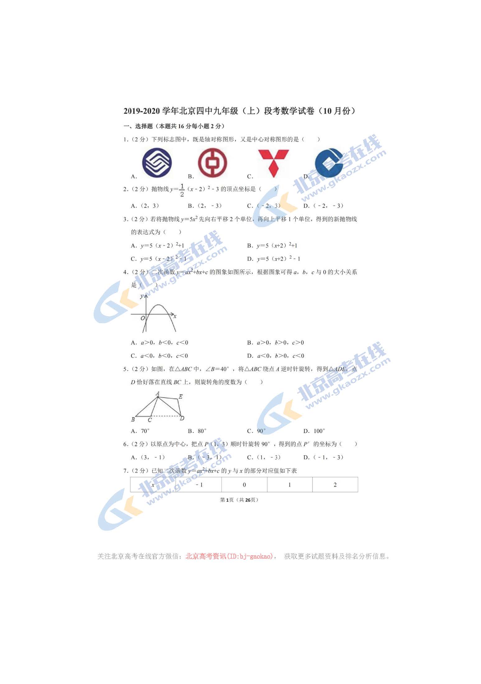 北京四中是北京市重点中学,考生和家长的关注度非常高。近日,北京四中初三年级第一次月考正式开考,为帮助考生学习参考北京四中初三月考试题,北京高考在线团队进行了收集整理,本文分享初三月考数学试题给大家学习参考!