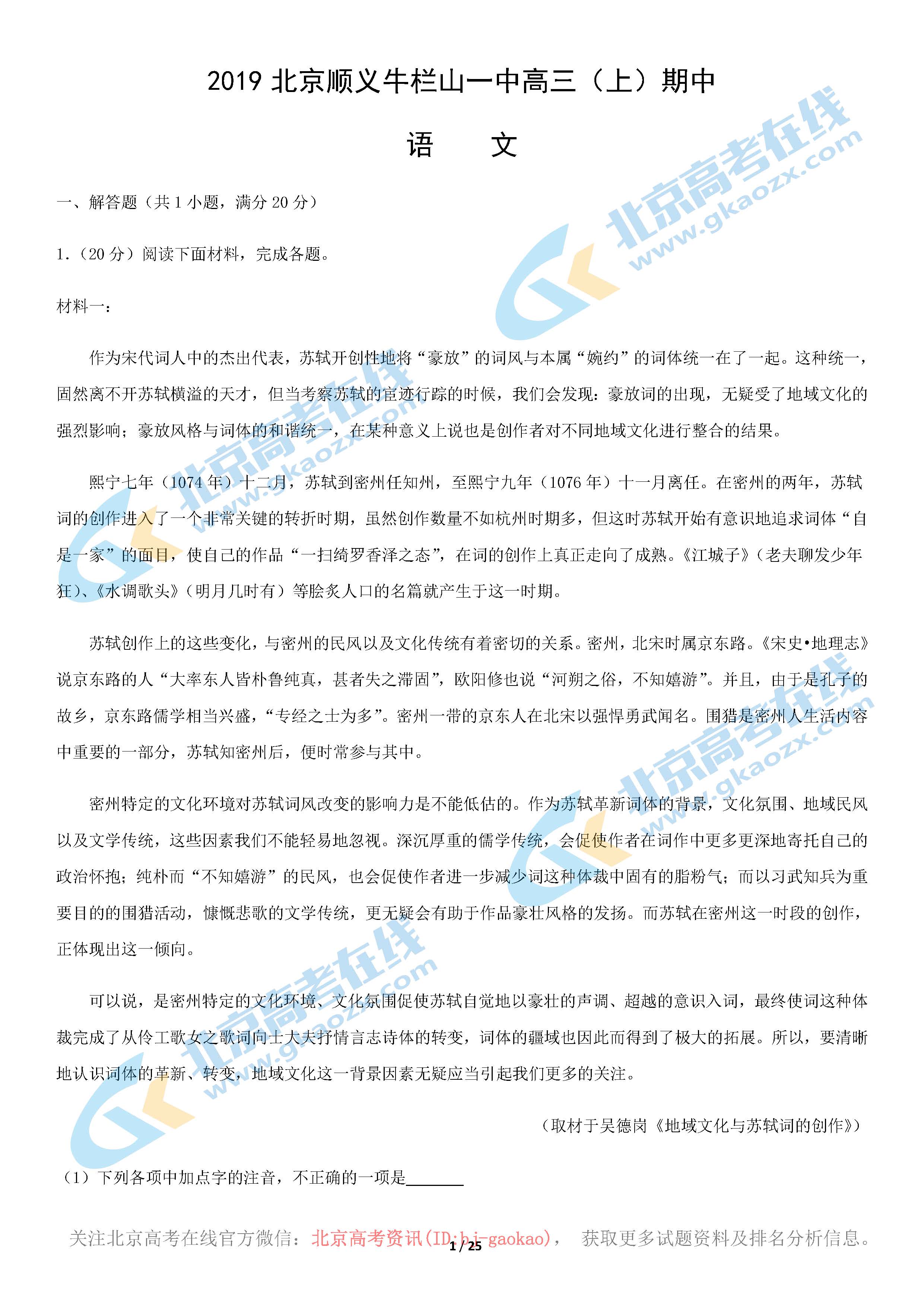 立即下载:2019北京顺义牛栏山一中高三(上)期中语文及答案