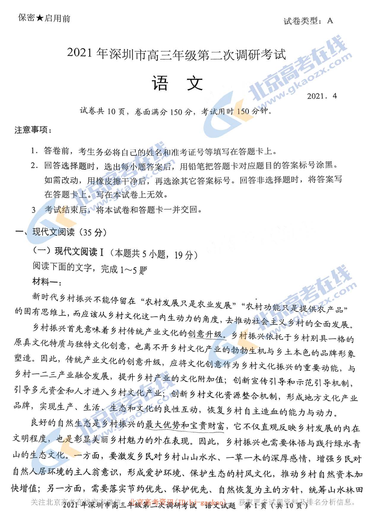 2021深圳市高三二模于4月21日开考,本文整理了电子版高三二模语文试题及答案,分享给各位考生下载学习参考。2021深圳市高三二模各科试题及参考答案于近期开考,北京高考在线平台将第一时间公布2021深圳市高三二模各科试题及参考答案,考生及家长可收藏本页面随时查看最新更新。