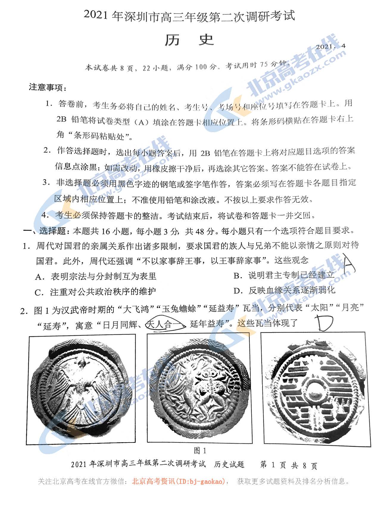 2021年深圳市高三二模历史试题及答案