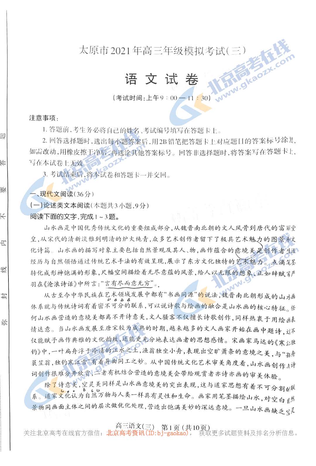 前段时间太原市2021届高三学生进行了三模考试,目前考试已经结束,北京高考在线团队整理了相关的语文试题及答案,供学生参考。