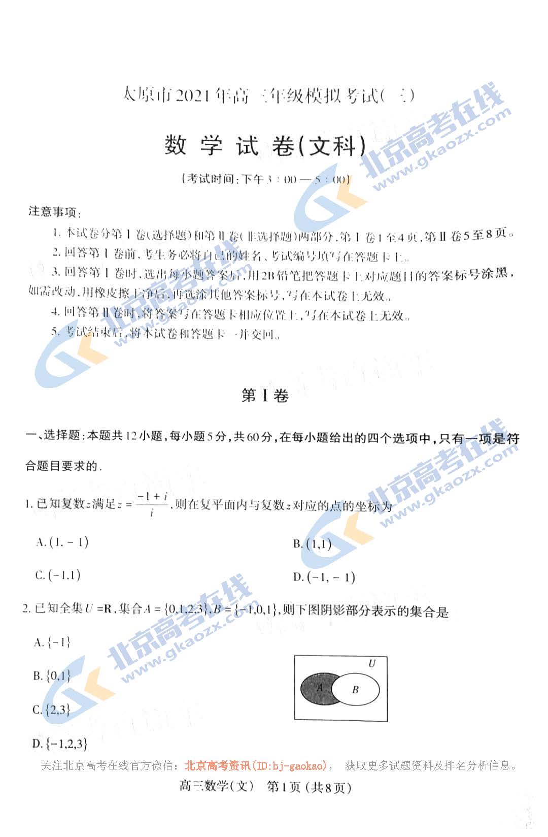 本文整理了太原三模文科数学试题及答案相关信息,有需要的考生可以在线查看学习,也可以下载下来,后续复习使用。近日,太原市2021届高三学生进行了三模考试,目前考试已经结束,北京高考在线团队整理了相关的语文试题及答案,供学生参考。