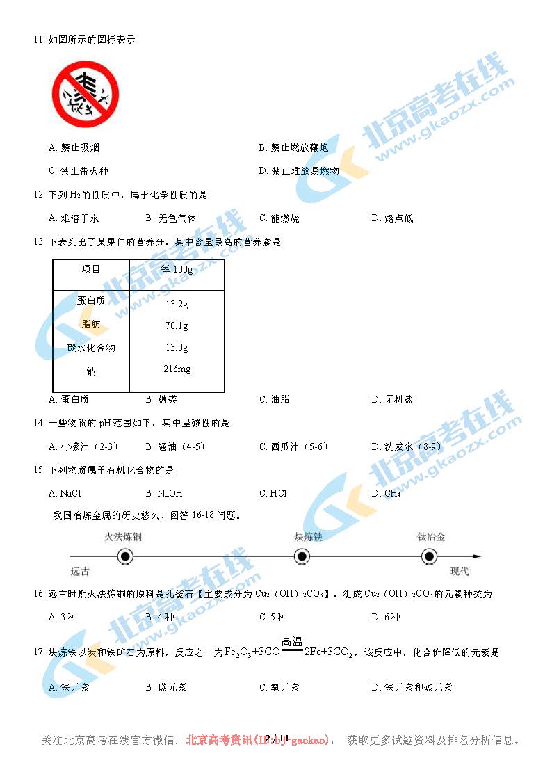 2021年北京中考化学科目考试已经结束,本文整理了相关试题及答案,考生们可以自行下载练习。2021年北京中考于6月24日正式开考,目前各科考试已经结束。北京高考在线第一时间整理了2021年北京中考化学试题及答案,供各位考生参考。