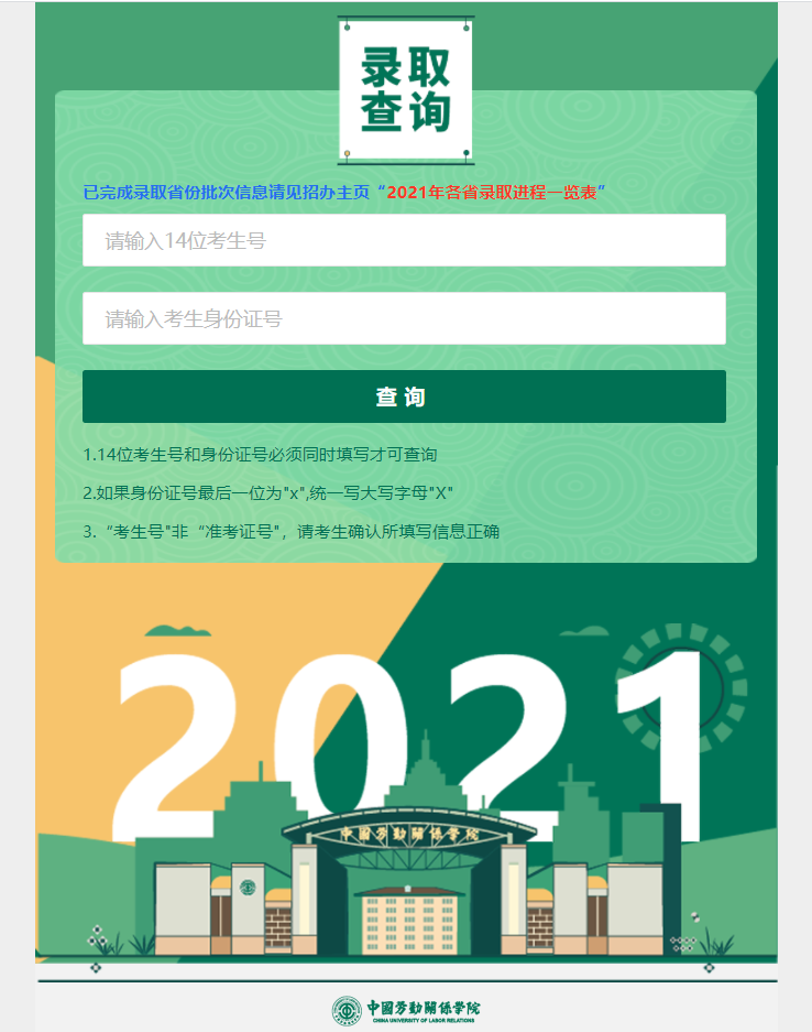 2021年,中国劳动关系学院录取结果查询网址是什么,考生如何查询个人录取结果?一起来看详细内容!7月上旬开始,北京市2021年高考本科录取工作正式开始!北京高考在线团队整理中国劳动关系学院2021年高考录取结果查询网址,一起来看!