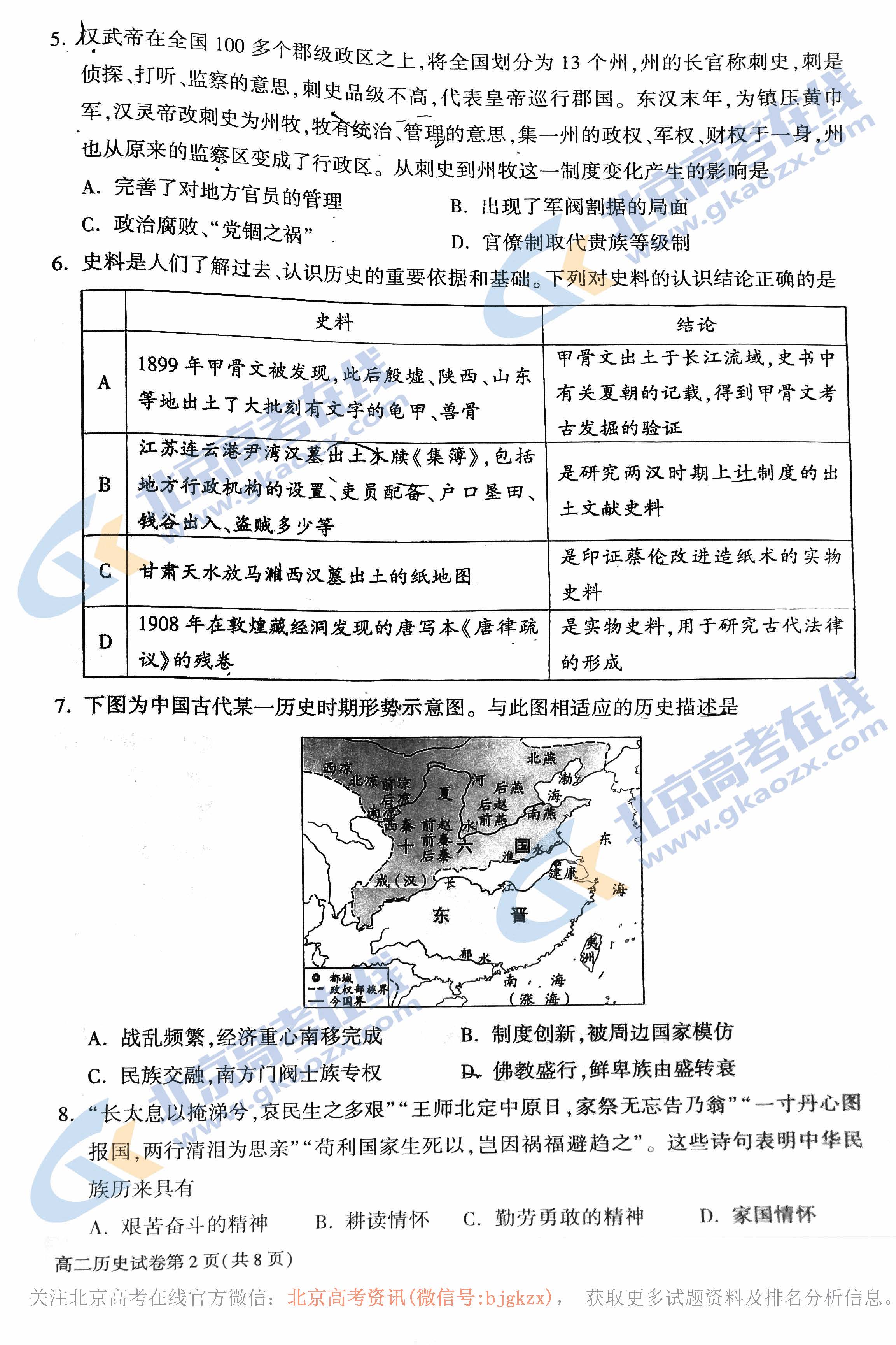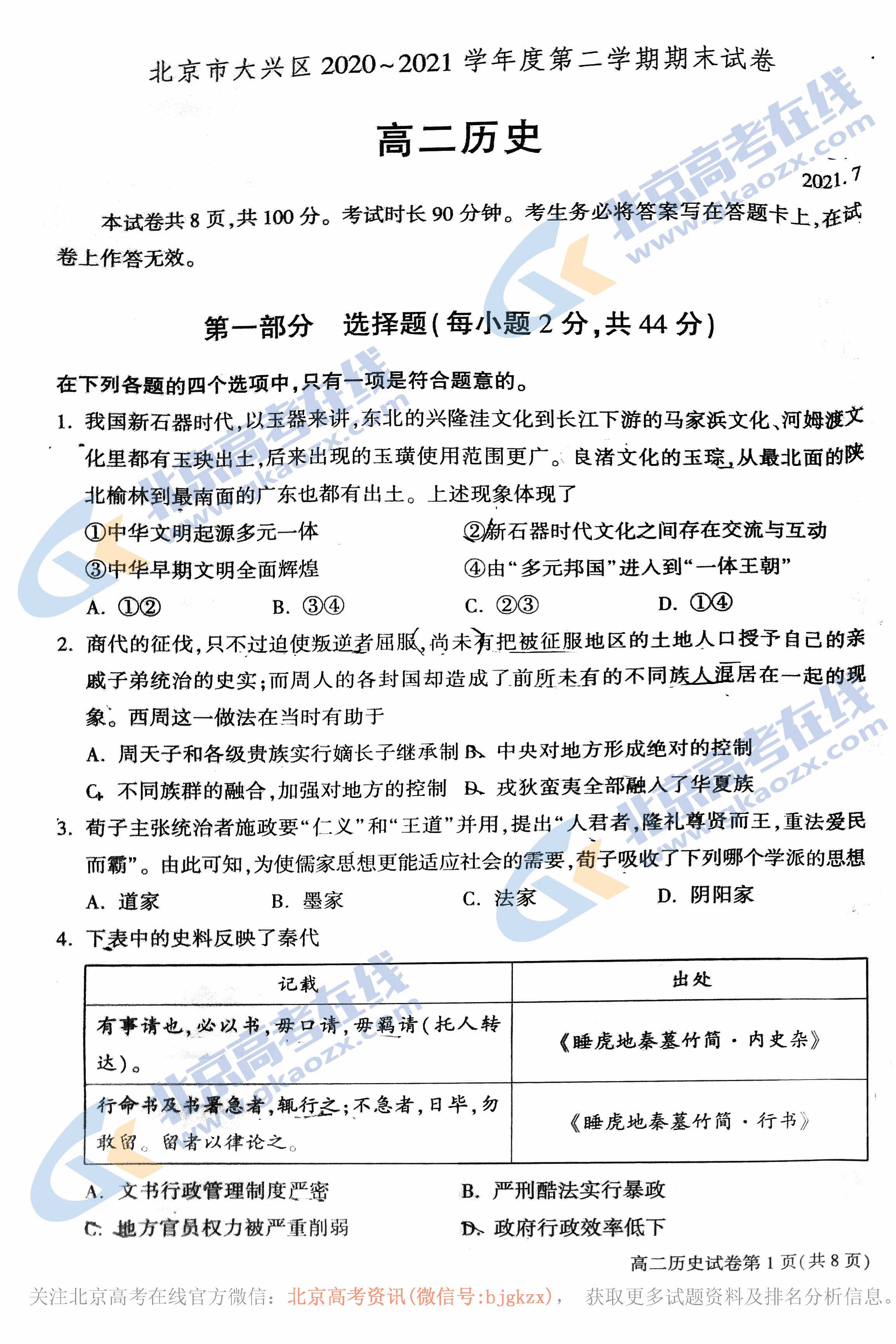 北京各区2021年高二年级第二学期期末考试已经结束。为了方便考生查找生物试题,便于更好地复习,北京高考在线团队对大兴区高二期末历史试题及答案进行了收集整理,一起看看吧。
