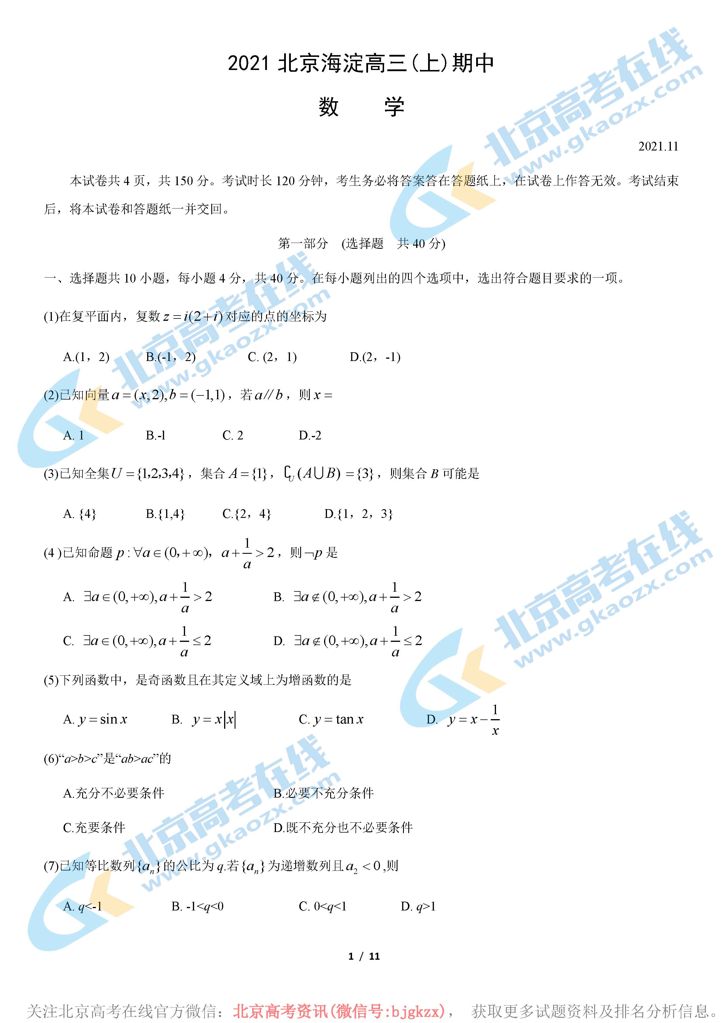 北京海淀区2021-2022学年高三期中考试已于11月2日,为了方便大家查找试题,北京高考在线团队整理了北京海淀区2021-2022学年高三期中数学试题及答案,分享给同学们。