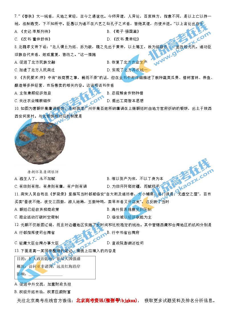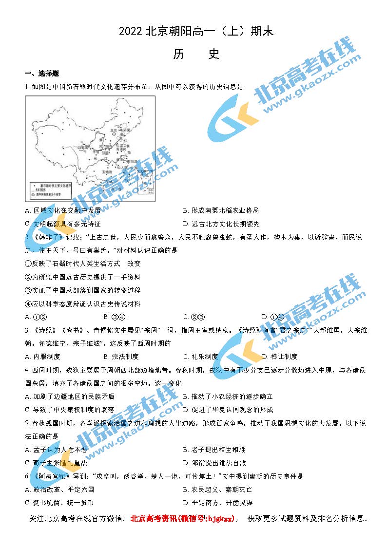 北京朝阳区高一上学期期末考试已于1月12日开考。目前考试已全部结束,为了方便大家查找相关试题及答案,北京高考在线团队整理了北京朝阳区2022年高一上学期期末历史试题及答案,分享给同学们下载试题。