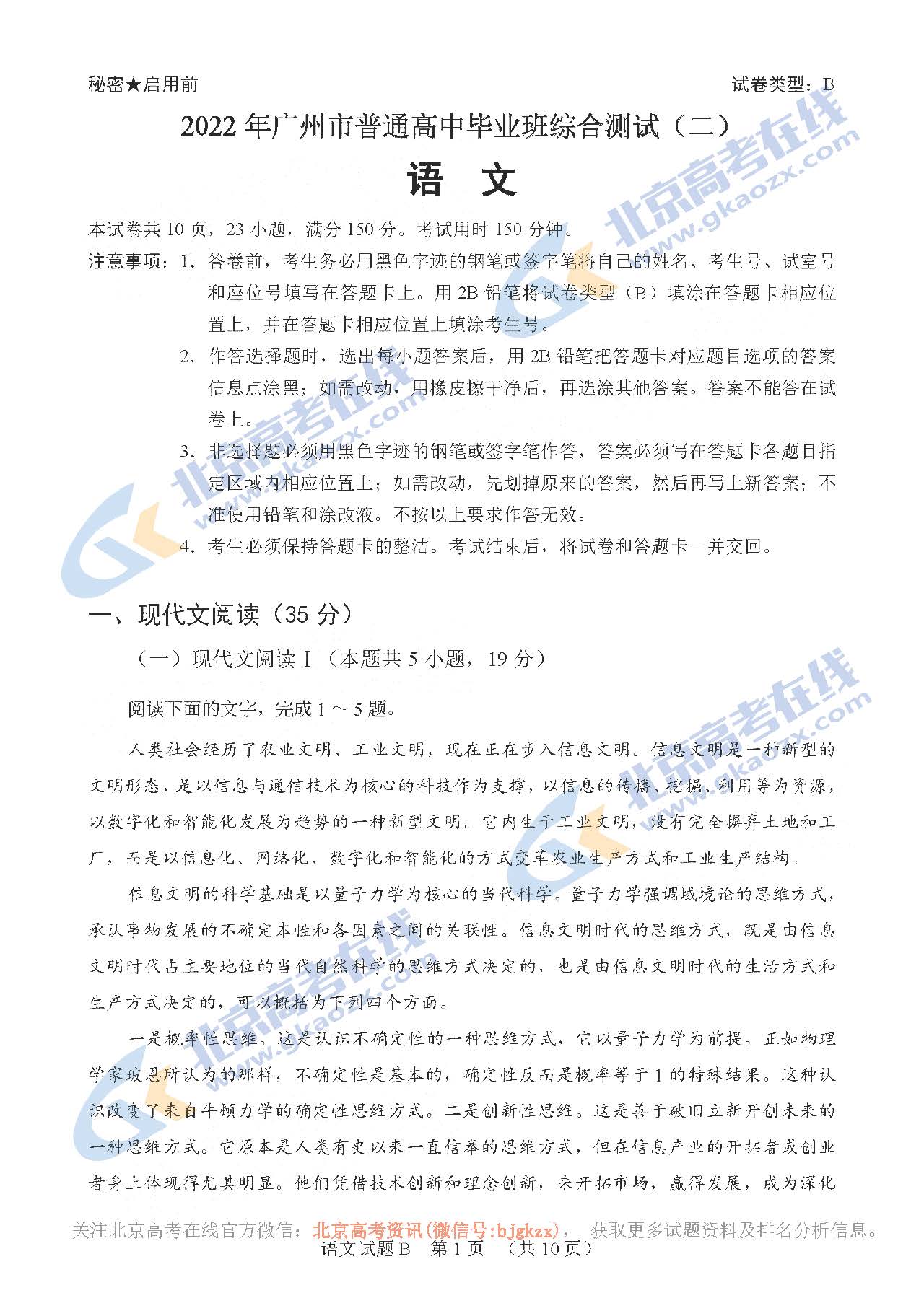 2022年广州二模语文科目考试已经结束。下面,北京高考在线团队整理了“2022年广州二模语文试题及答案”,想要练习的考生可以下载学习。