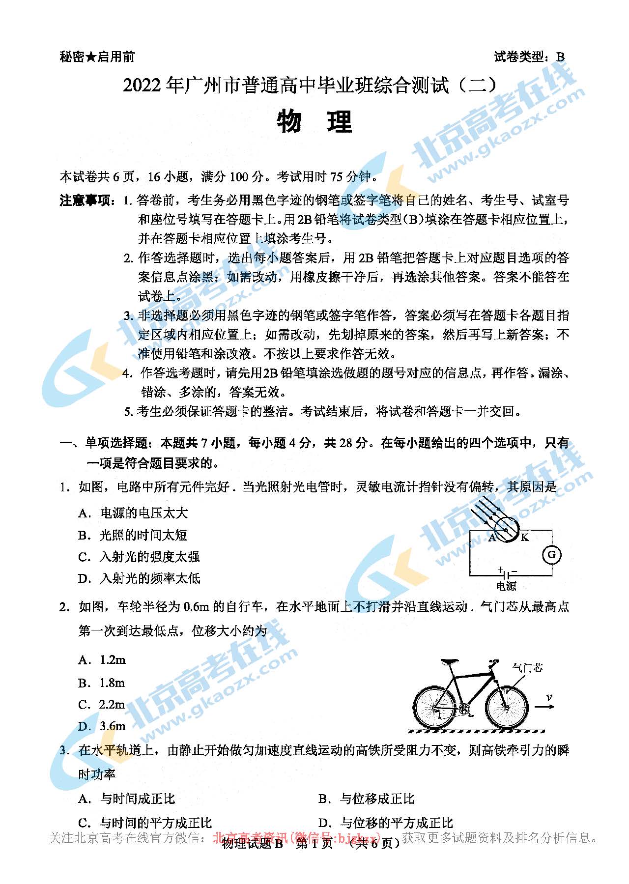 2022年广州二模物理科目考试已结束,本次二模考试是高考前重要的模拟测试,考生要格外重视。北京高考在线团队整理了2022年广州二模物理试题及答案,想要练习的考生重点关注。