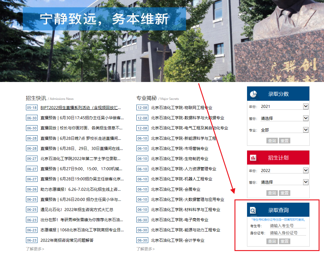 北京石油化工学院2022年录取结果查询入口
