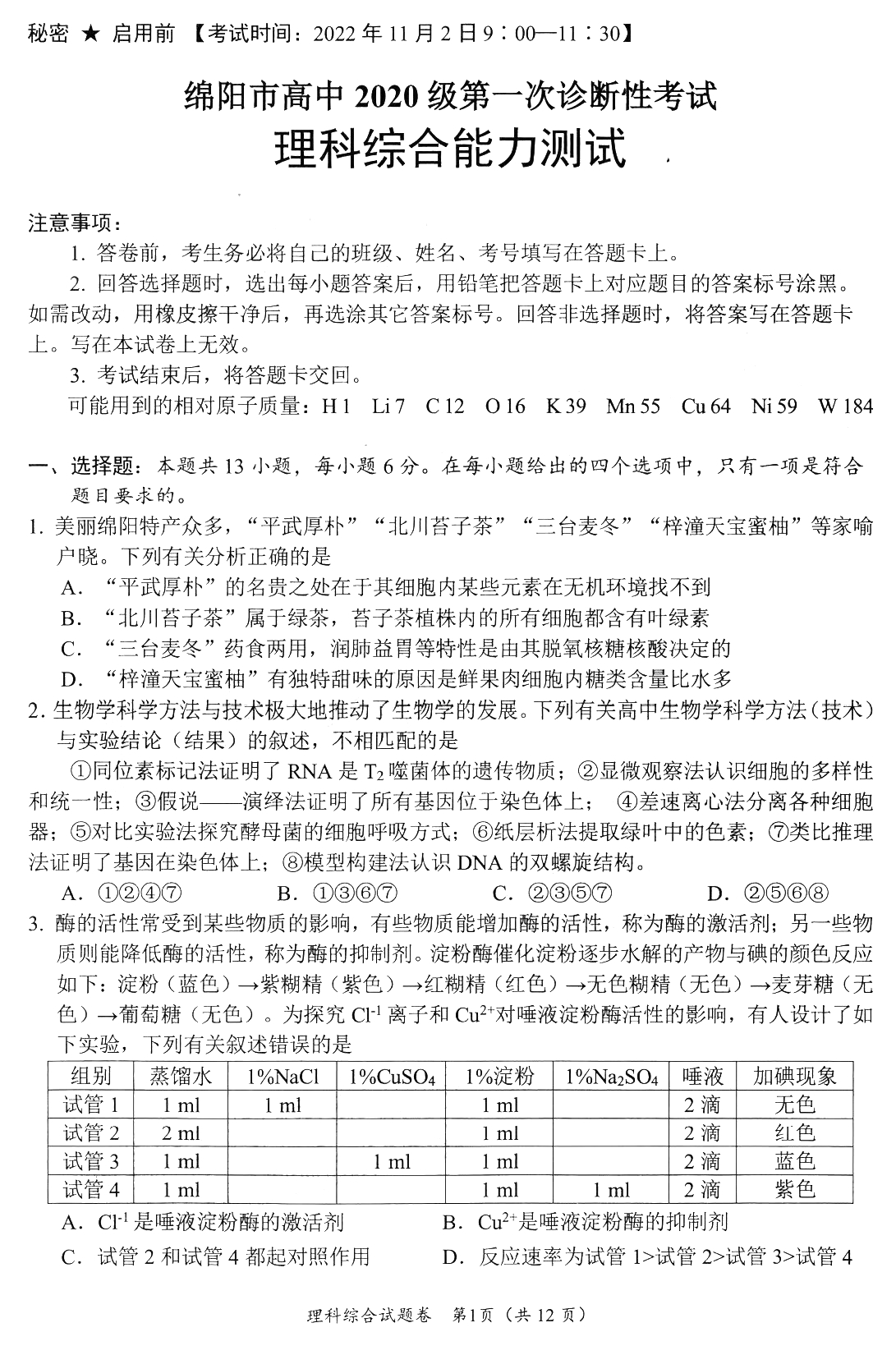2023届绵阳高三第一次诊断考试的时间为11月1日-2日。绵阳一诊试题具有一定的参考意义,为此,北京高考在线特为大家整理了2023年绵阳一诊理综试题及答案,附电子版高清可下载!