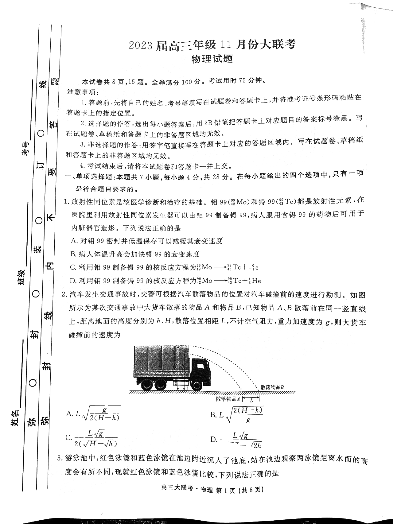 2023广东高三五校11月联考(二)物理试题及答案