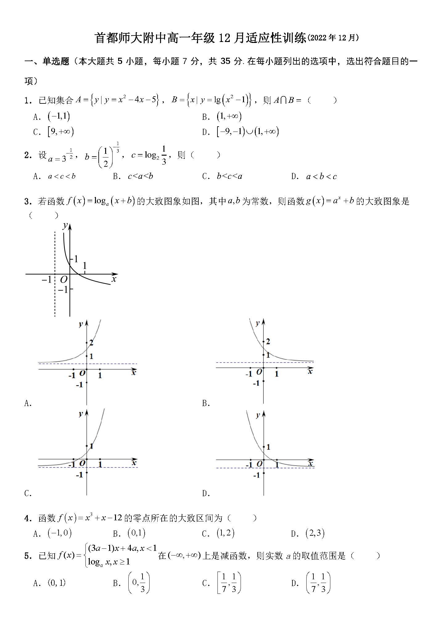 立即下载:2022北京首师大附中高一12月月考数学试题