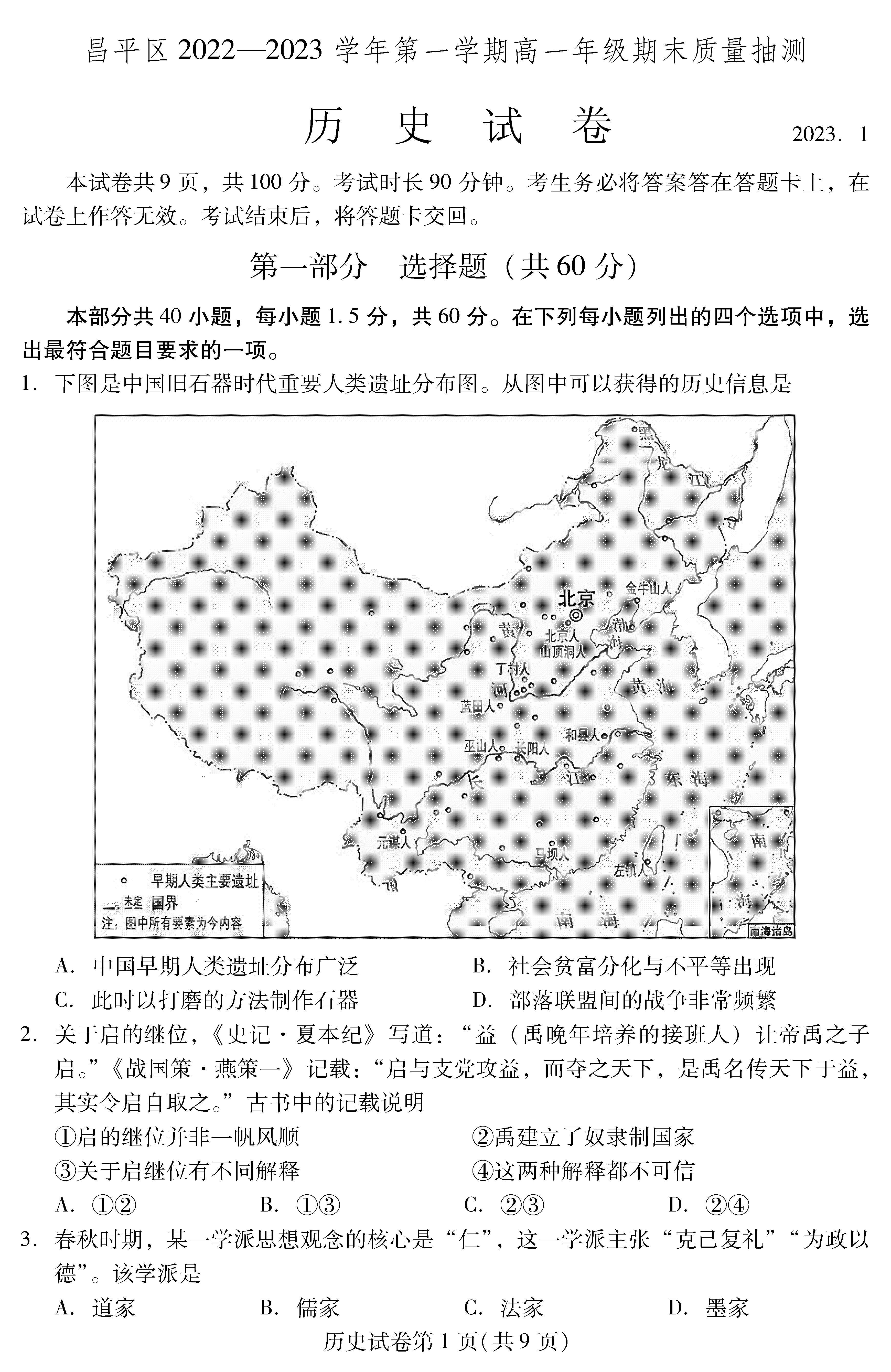 2023北京昌平区高中各年级期末考试已陆续开始,为了方便同学们查找相关试题,北京高考在线团队整理了昌平区高一上学期期末历史试题及答案,附高清电子版,欢迎为大家下载分享~