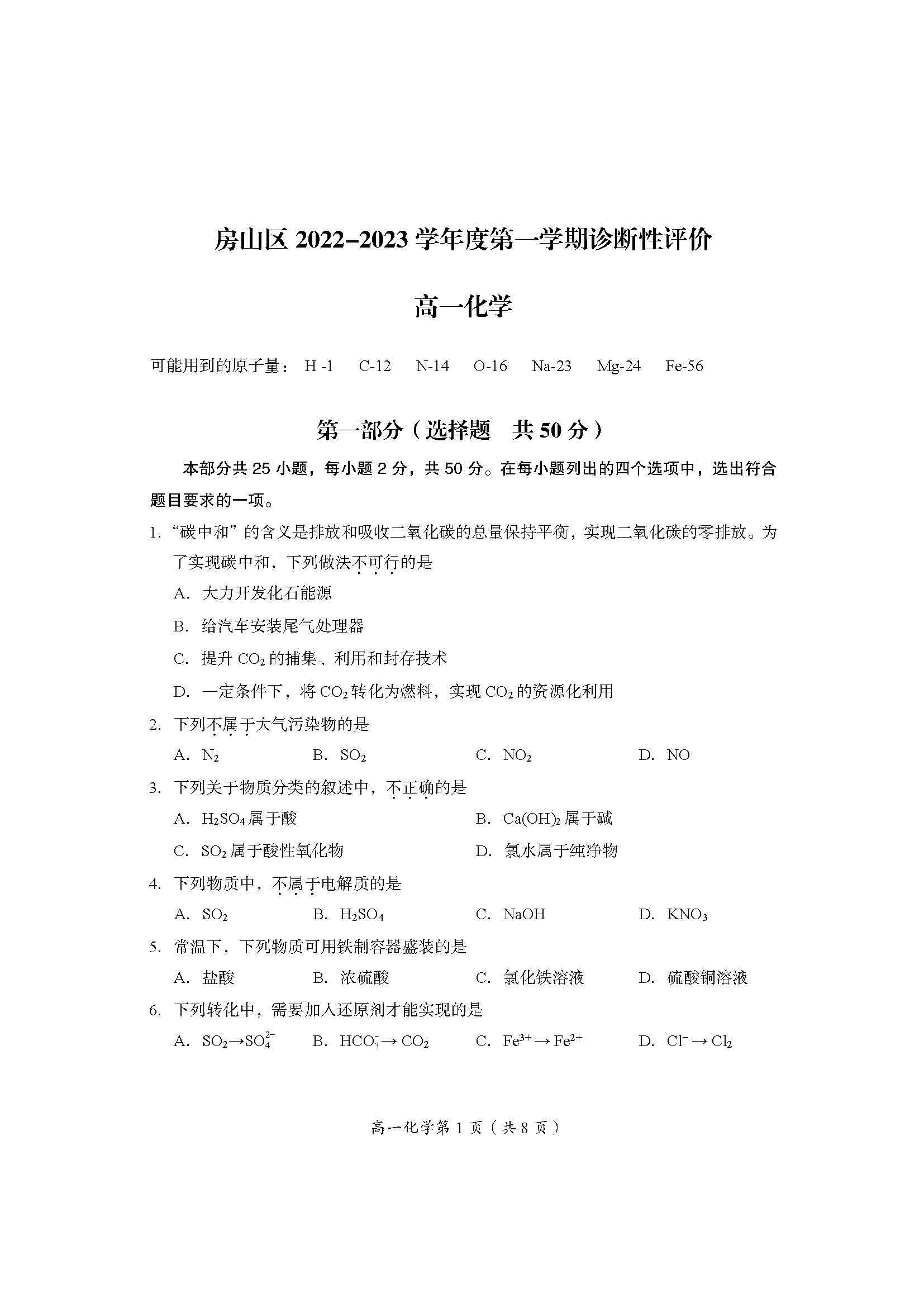2023北京房山区期末考试已陆续开始,为了方便同学们查找相关试题,北京高考在线团队整理了北京市房山区高一上学期期末化学试题及答案,附高清电子版,欢迎为大家下载分享~
