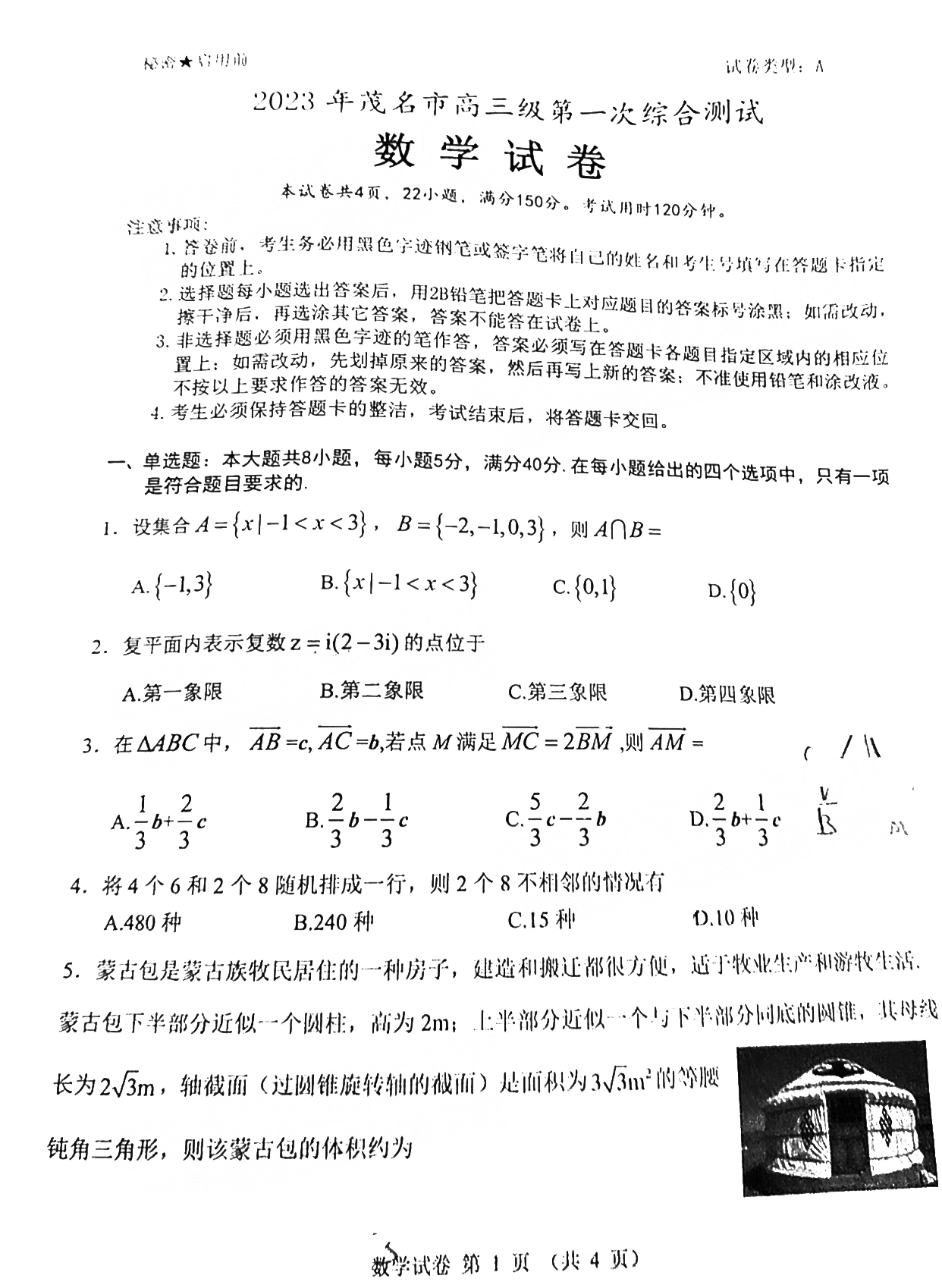 2023广东茂名一模于2月6日开考,为了方便同学们查找相关试题及答案进行练习,北京高考在线团队整理了茂名一模数学科目试题及答案,附高清PDF电子文件,可下载!