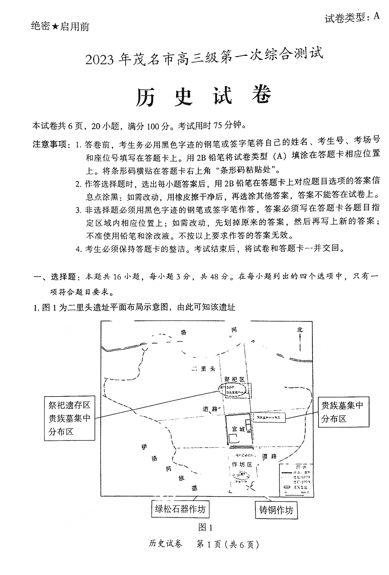 2023广东茂名一模于2月6日开考,为了方便同学们查找相关试题及答案进行练习,北京高考在线团队整理了茂名一模历史科目试题及答案,附高清PDF电子文件,可下载!