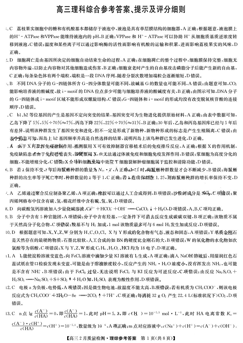 2023九师联盟高三2月第二次联考于2月23日开考。北京高考在线团队特意整理了理综科目试题及答案,分享给同学们。详情如下: