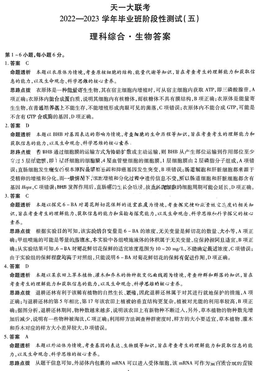 2023天一大联考高三阶段性测试(五)于3月6日开考。北京高考在线团队整理了理综科目试题及答案,分享给同学们。