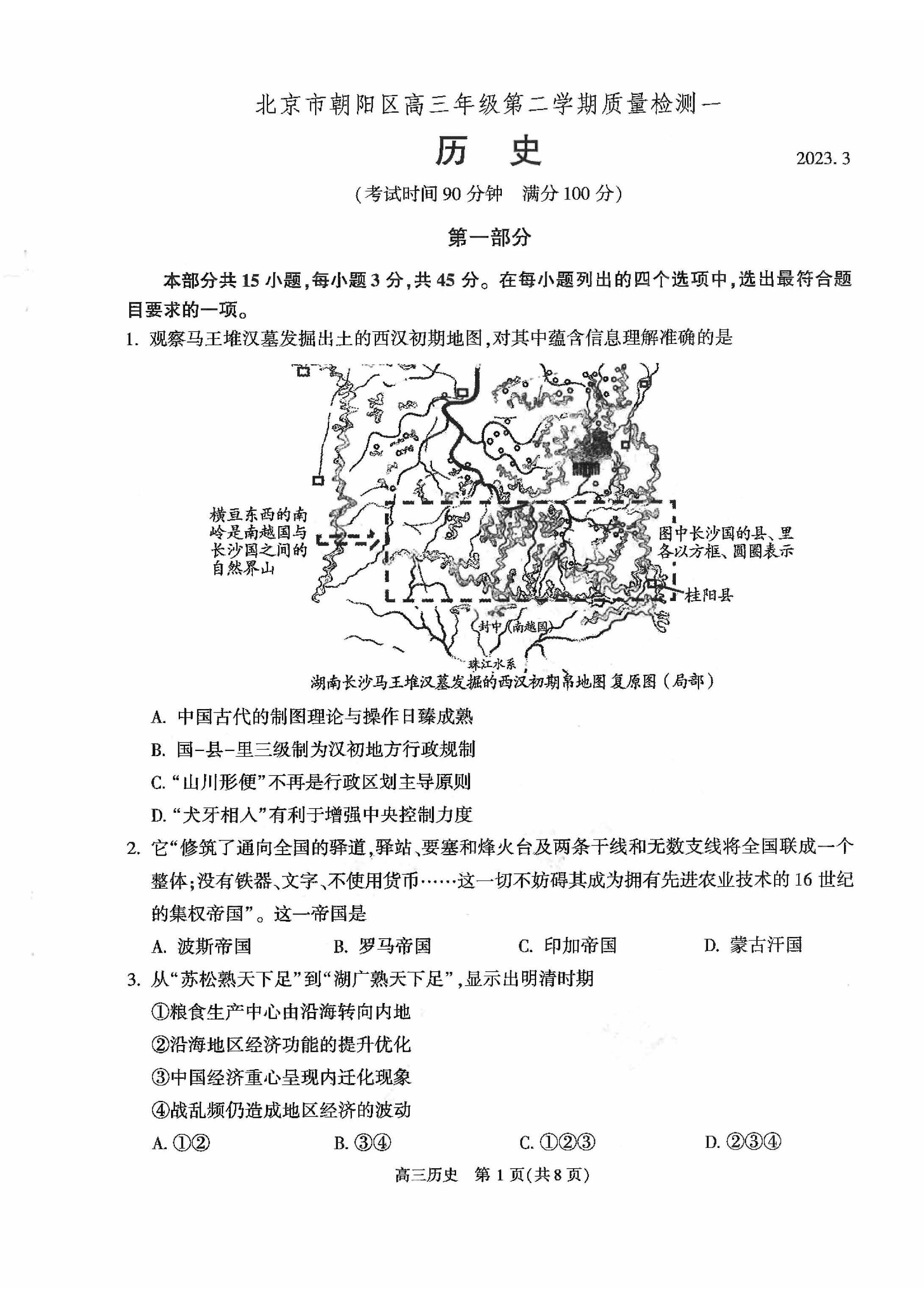立即下载:2023年北京朝阳高三一模历史试题及答案