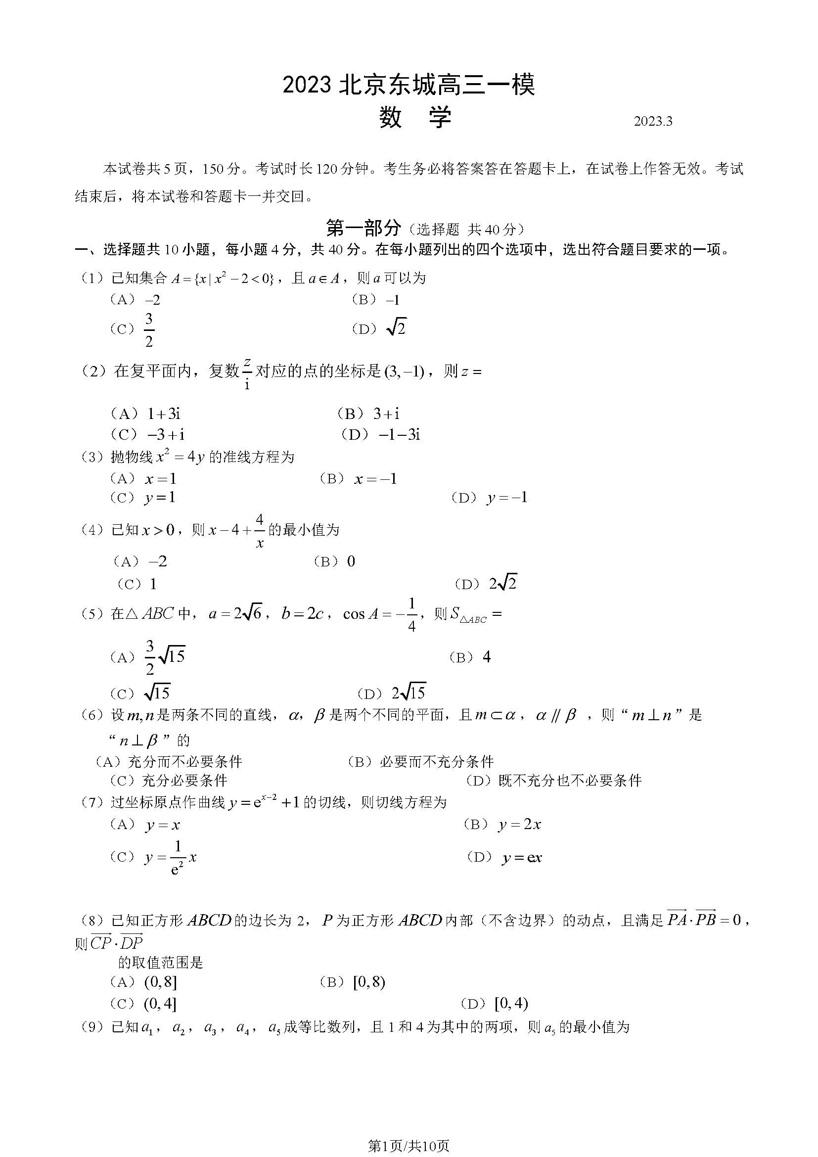 2023年北京东城区高三一模考试于3月27日-30日进行,为此,北京高考在线团队整理了数学科目试题及答案,详情如下: