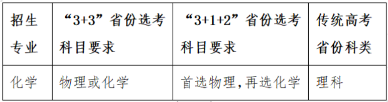 为全面贯彻党的教育方针,根据教育部有关文件精神,服务国家重大战略需求,加强基础学科拔尖创新人才选拔培养,经批准,我校2023年继续在部分省份开展基础学科招生改革试点(简称强基计划),探索多维度考核评价模式,着力选拔一批在化学学科领域有志向、有兴趣、有天赋的学生进行专门培养,为国家重大战略领域输送经世致用后备领军人才。