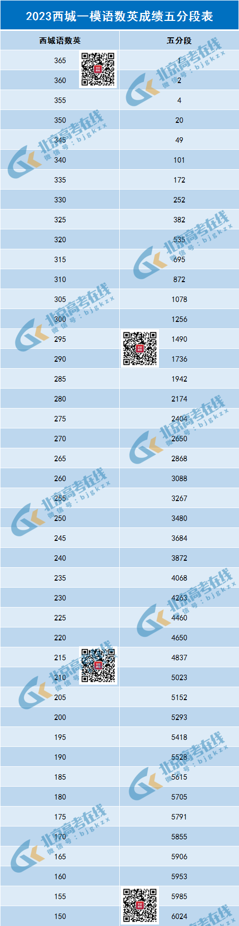 2023北京各区高三一模陆续开展,目前部分区成绩、排名已出,下面北京高考在线团队为大家搜集整理了2023北京西城高三一模语数英成绩五分段数据,西城区的同学快来看看你的排名情况吧!